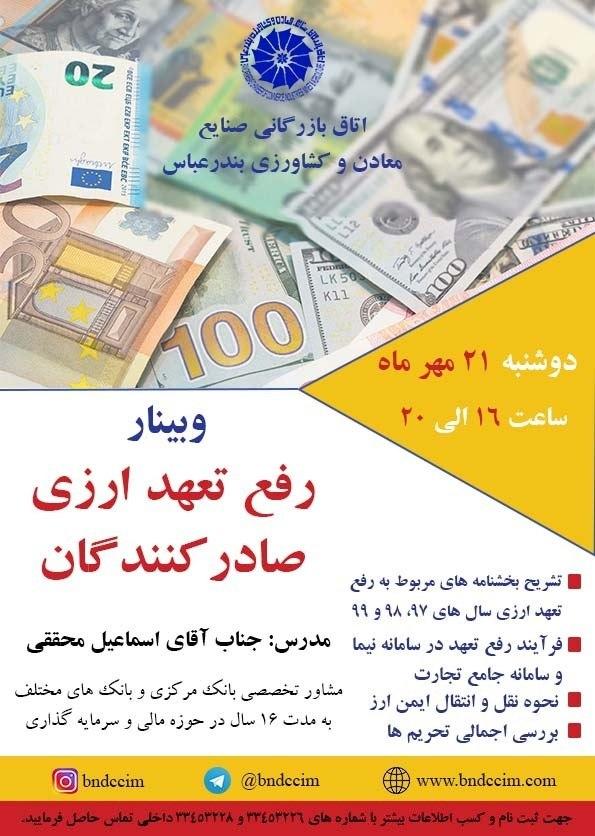 Lecturer: Mr. Ismail Mohagheghi; Expert Advisor to the Central Bank and various banks for 16 years Event time: Monday, October 12, 2016, 4 p.m. What you will learn in this course: Explanation of the circulars related to the termination of foreign exchange obligation in 1997, 1998 and 1999 Commitment process in Nima system and comprehensive trade system How to safely transfer currency Overview of sanctions Due to limited capacity, priority is given to those who register earlier. The course participation link will be sent to the registrants. Send documents: Online registration through the site www.bndccim.com Training section – Register training courses WhatsApp: 09029999656 Email: bndccim.e.r.i@gmail.com For more information, call 0733453226 or 33453228 ext